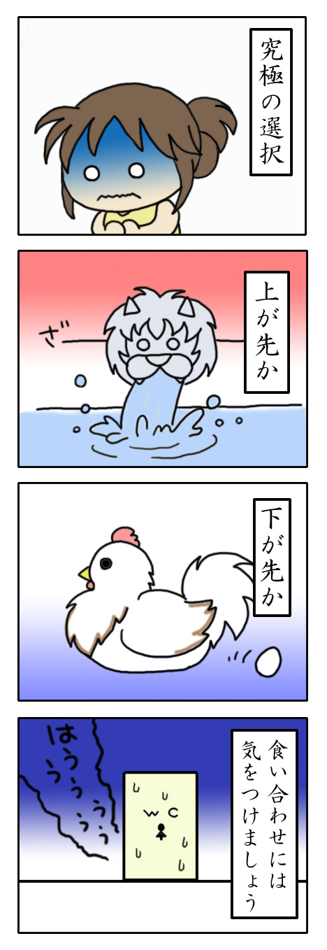(つω`) わたしは左の四こまのような究極の選択に迫られたのですよ
