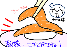 たまたま取ったサーモンが、二枚重ねでした。