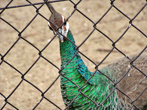 実は私、この動物園の中で、この孔雀の檻がいちばん好きなんです。この羽根をみていると癒される……