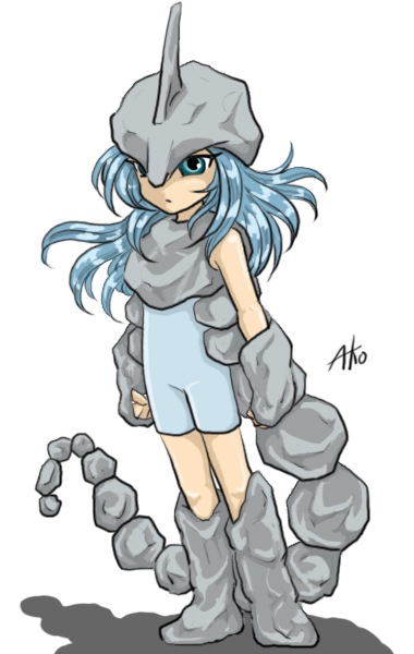 こちら、いわへびポケモンの「イワーク」です。ごつい奴ですが、相反する部分を入れたくて髪を長くしてみました。ストイックなカタブツ少年に見えてなかなかにお気に入りですよ。