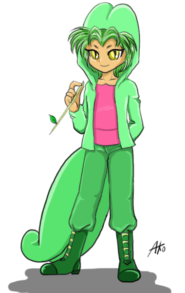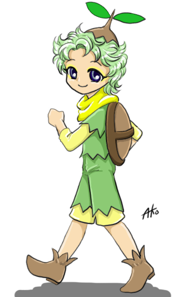こちら、ポケモンの「ナエトル」を擬人化したものです。本当はもっとオトボケな顔をしているんですが、やっぱり少年にするからにはこのくらいが妥当かと。オリジナルのナエトルが見たい方は、ポケモンの公式サイトにでもアクセスしてみて下さい。