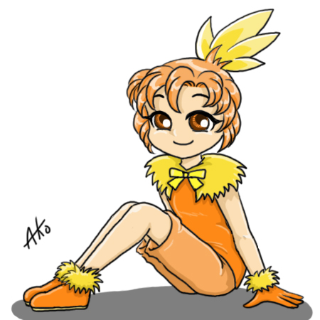 ひよこポケモンの「アチャモ」ですね。ちょっと女の子っぽくなりすぎた気がしますが、一応男の子のつもりで。