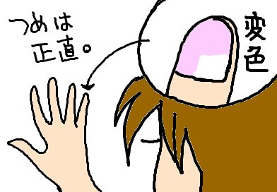 図、参照してね。右手小指の爪の下三分の一が、真っ白になっていました。別に痛くはないけど、さすがに見栄えは悪いです。