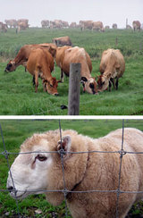 ちなみに画像は、ジャージー牛さんの群れと、頭突き注意の看板雄羊。アブナい!
